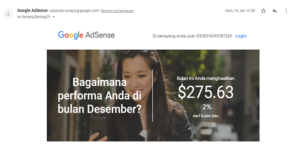 Gaji Google Adsense Senang Berbagi Bulan Desember 2018